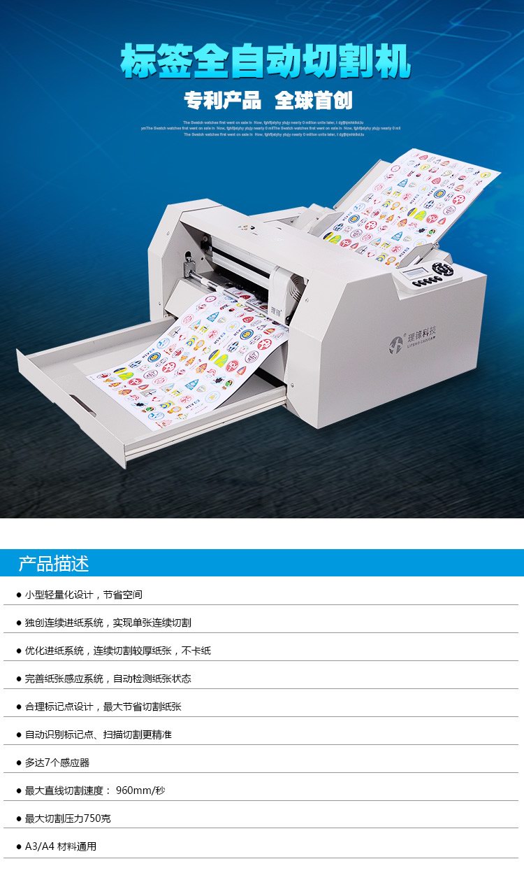 理锋A3+全自动标签切割机 高速不干胶/卡纸数码模切机